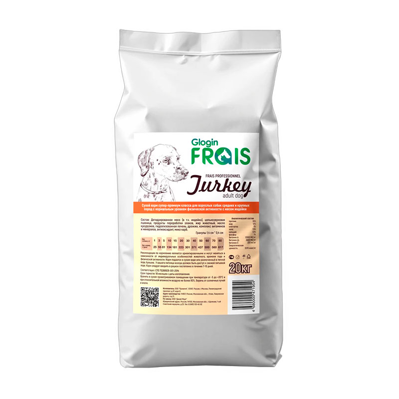 Сухой корм Frais Adult Dog Turkey отлично подходит для взрослых собак средних и крупных пород: его состав содержит оптимальный баланс питательных веществ, способствующий хорошему самочувствию и поддержанию здоровья питомца. В данную формулу включено дегидрированнное мясо индейки, которое является превосходным источником легкоусвояемого белка, а также содержит необходимые организму витамины и минералы.